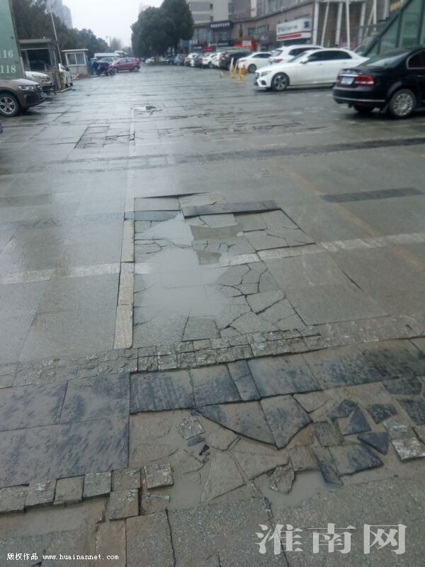 洞山新村居民吳女士向淮河早報(bào)、淮南網(wǎng)記者反映,近一年來(lái),小區(qū)北面的尚錦廣場(chǎng)路面鋪設(shè)的地板磚,大半被過(guò)往的汽車碾壓破碎。最近一段時(shí)間的雨雪天氣,導(dǎo)致廣場(chǎng)上積滿污水,行人稍不注意,就會(huì)被污水弄臟衣服。(記者)