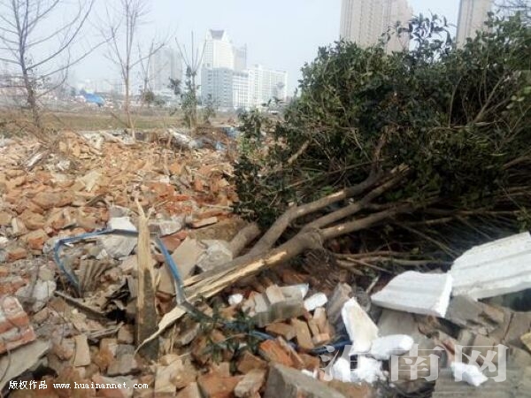 最近,淮河早報、淮南網(wǎng)記者在洞山東路北邊的一處拆遷工地看到,可能是施工人員的野蠻施工,導(dǎo)致一棵生長多年的冬青樹被攔腰折斷。(記者)