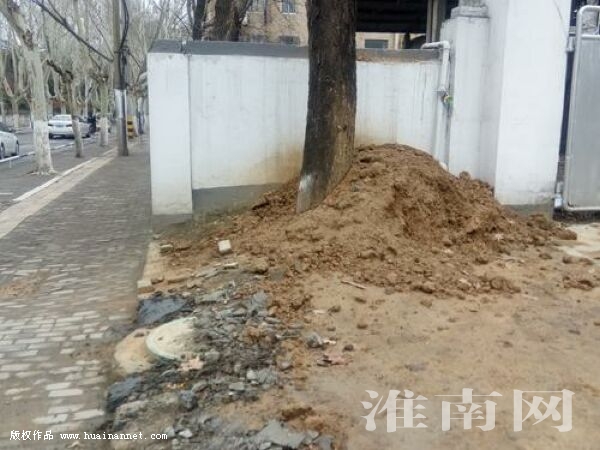 市民魏女士向淮河早報(bào)、淮南網(wǎng)記者反映,在劉家山路東段北邊的人行道邊,不知何人在路邊傾倒了一大堆黃色的渣土。前些天的一場(chǎng)雨水,導(dǎo)致渣土的黃色泥漿橫流,將路面及白色的圍墻弄臟。(記者)