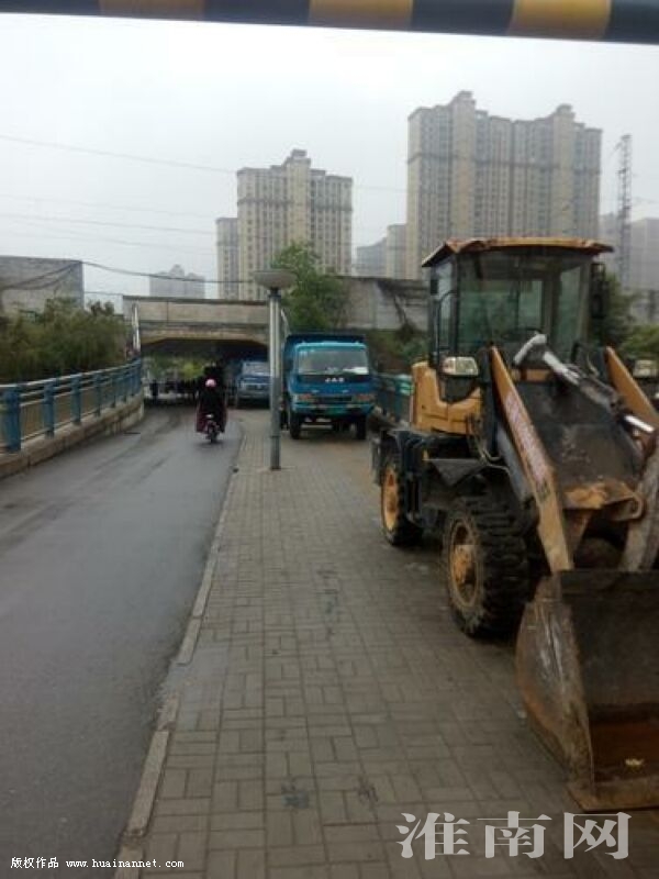 橋下人行道上,大貨車違,F(xiàn)象依然存在