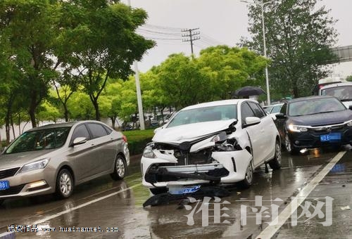 6月13日下午5時許,廣場路與國慶路交匯口段相隔約50米的距離上接連發(fā)生兩起車輛碰撞事故,其中一起事故中,一輛豐田白色轎車受損嚴(yán)重,其引擎蓋、翼子板、前大燈等均碎裂變形。民警提醒:雨天路滑,駕駛?cè)说囊曇昂蛙囕v制動等都會受到一定影響,行車過程中,駕駛?cè)藙?wù)必要集中注意力,注意觀察路況,并與前車保持適當(dāng)距離,做好隨時處理突發(fā)情況準(zhǔn)備。(記者 蘇國義)