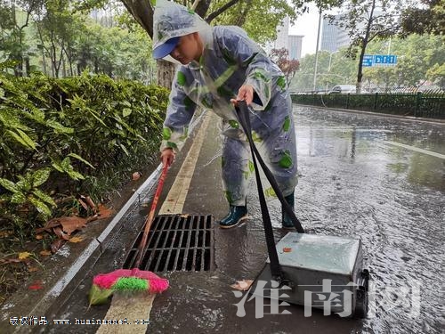 凌晨5時(shí)許,田區(qū)洞山中路老市政府門前路段出現(xiàn)嚴(yán)重積水,行人難行、車輛駛過容易拋錨。田區(qū)環(huán)衛(wèi)工人劉梅和同事們排查發(fā)現(xiàn),是被暴雨打落的樹葉樹枝等雜物堵住了下水道口,導(dǎo)致積水難以排出,于是她和同事們冒雨疏通各個(gè)排水口,加快積水排放速度。同時(shí),冒著暴雨清掃路面樹葉樹皮等垃圾,減少下水道口被堵幾率。眾人合力疏通半小時(shí)后,沿線下水道口恢復(fù)正常,開始快速排水,險(xiǎn)情解除。
