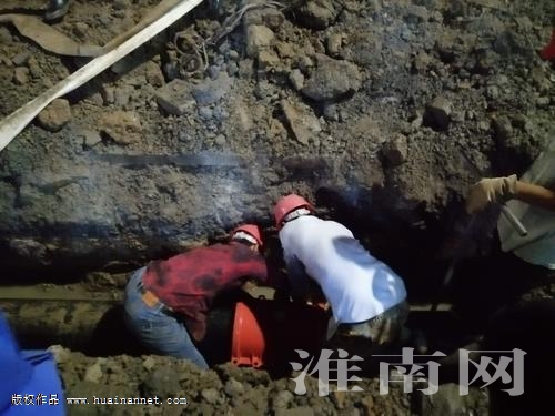 據(jù)淮南首創(chuàng)水務(wù)有限責(zé)任公司相關(guān)負(fù)責(zé)人介紹,受損供水管道所在的位置,地下各種管網(wǎng)交叉,情況比較復(fù)雜,旁邊還存在高壓線桿,施工難度很大,為盡快恢復(fù)居民供水,避免受損管道修復(fù)后再存在問題,該公司7月15日當(dāng)天上午決定放棄原受損管道維修,在路口西側(cè)重新開挖鋪設(shè)一段近百米的新管道與主供水管道對(duì)接。