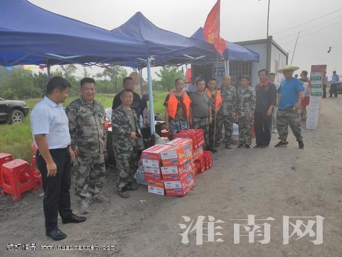 慰問組一行先后來到八公山鎮(zhèn)老應(yīng)段、山王鎮(zhèn)黑里下段防指,送來了方便面、八寶粥、飲料等慰問品,助力淮河大堤防汛工作,并向正在值守的退役軍人防汛突擊隊(duì)老兵們致敬,對他們自入汛以來為保衛(wèi)人民生命和財產(chǎn)安全所付出努力表示感謝。