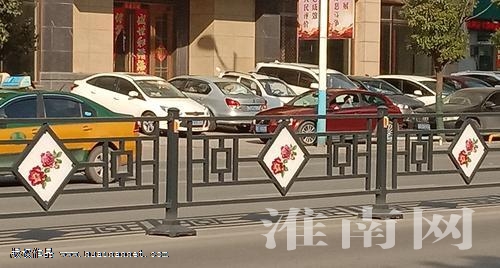 眾所周知,朝陽路位于我市主城區(qū),是各種交通設(shè)施比較完備的一條主干道,日常車流量也比較大。自從這些牡丹花圖案出現(xiàn)在該路段中間隔離欄上后,更是讓朝陽路錦上添花。12月20日,淮河早報(bào)、淮南網(wǎng)記者在朝陽西路看到,白色鋪底的菱形畫框內(nèi),兩朵鮮紅的牡丹花在幾片綠葉的點(diǎn)綴下,顯得格外艷麗。市民李女士在接受淮河早報(bào)、淮南網(wǎng)記者采訪時(shí)說,交警部門這一舉措,不僅讓單調(diào)的交通設(shè)施多了一些文化韻味,同時(shí),無形之中提升了城市道路的品位。