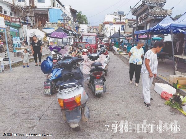 古鎮(zhèn)菜市場(chǎng)是一條東西走向的小街,小街由兩部分組成,一部分為室內(nèi)菜場(chǎng),另一部分則是沿街店鋪。當(dāng)天上午7時(shí)50分,淮河早報(bào)、淮南網(wǎng)記者沿著小街由西向東走,快走到菜市場(chǎng)門口時(shí),看到路中間停了很多三輪車、電動(dòng)車,儼然是一處臨時(shí)停車場(chǎng)。買菜的居民應(yīng)該習(xí)慣了在此停車,騎行至此,就把車停在這兒,然后進(jìn)市場(chǎng)內(nèi)買菜。