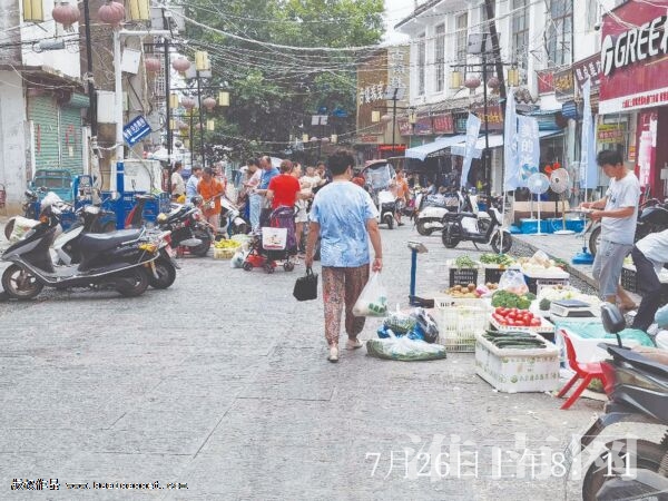 還有一些門面房店主則把商品直接搬到了店外,占用門口的一大片地方;春釉鐖(bào)、淮南網(wǎng)記者在一家賣蔬菜的店鋪門前看到,菜筐從店門前一直延伸到小街路中央,粗略數(shù)了一下,至少擺了二三十個(gè)筐子。