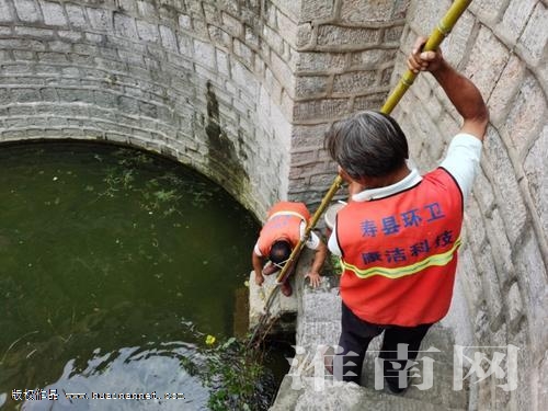 (記者 張雪峰 通訊員 陶應(yīng)山)古城壽縣有“鐵打的壽州城”之譽(yù),其中,城墻內(nèi)的“月壩”在抵御洪水中功不可沒(méi),如今已是古城旅游景點(diǎn)。9月2日下午,壽縣城管局組織環(huán)衛(wèi)工人,利用折梯進(jìn)入古城東北角重點(diǎn)文物“月壩”內(nèi),清理“月壩”內(nèi)的雜草,對(duì)水面漂浮物進(jìn)行打撈,讓景點(diǎn)更美麗。