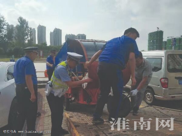 (通訊員 裴培 攝影報道)連日來,淮南經(jīng)濟技術開發(fā)區(qū)的主次干道處處活躍著城管執(zhí)法人員忙碌的身影。他們有的在和沿街商鋪、單位宣傳法律法規(guī)、發(fā)放宣傳材料;有的在人行道、綠地等區(qū)域規(guī)范車輛停放;有的在和交警一起依法拖離違停車輛。他們的目標只有一個——用十分的辛勤付出,來百分百完成交通秩序集中整治任務,為千千萬萬的群眾帶來明顯的環(huán)境提升。