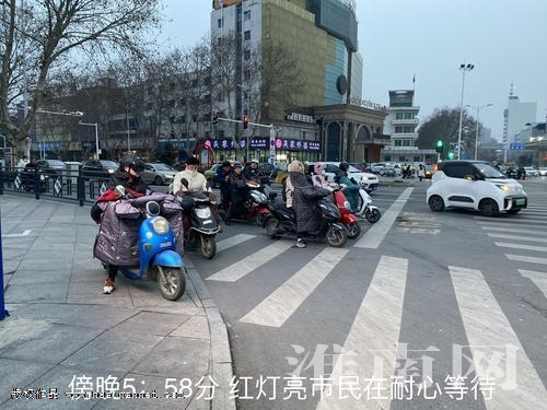 圖四:17時(shí)58分紅燈亮市民在耐心等待(記者 李鈞 李嚴(yán) 攝影報(bào)道)