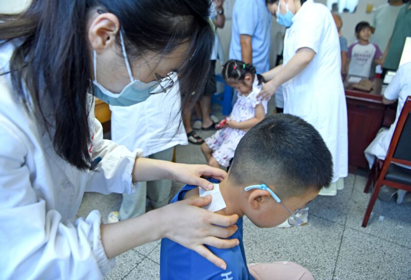 連日來(lái),人們通過(guò)艾灸、針灸、貼“三伏貼”等方式進(jìn)行調(diào)理,增強(qiáng)抗病能力,提高免疫力。圖為上海中醫(yī)藥大學(xué)附屬曙光醫(yī)院淮南醫(yī)院醫(yī)務(wù)人員為小朋友貼“三伏貼”。