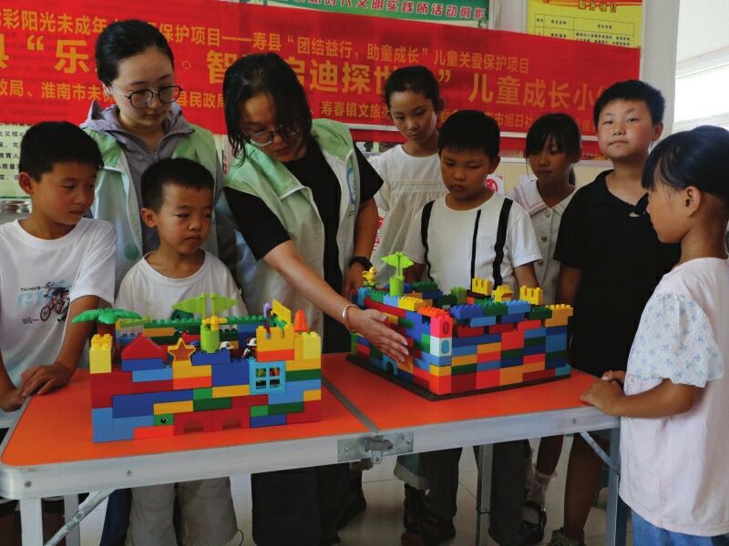 第三站位于壽縣壽春鎮(zhèn)九龍民族村,當日這里正開展“樂樂箱・智慧啟迪探世界兒童成長”活動。觀察力、協(xié)作力,體現(xiàn)“智趣賦能”的服務理念,展示項目對兒童綜合素質培養(yǎng)的成效。旭日社工介紹,在這里“團結益行助童成長”兒童關愛保護項目有序推進,社工們圍繞兒童安全守護、課業(yè)幫扶、心理支持及紅色文化浸潤等維度開展多元服務,如家、校、社共護“零欺凌”服務活動,開展防溺水、防拐騙等宣傳,提升兒童安全意識與技能;并通過“安全+學業(yè)+心理+文化”多維賦能,筑牢留守、困境兒童成長支持網,持續(xù)護航兒童發(fā)展。