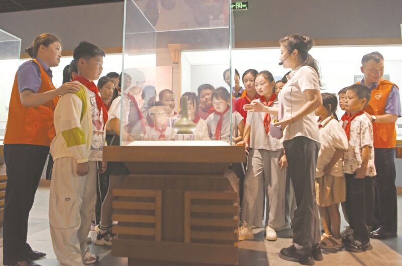 暑假期間,中國鐵路上海局集團有限公司淮南西站團委與謝家集區(qū)孫廟鄉(xiāng)堆坊小學開展形式多樣的關愛留守兒童志愿服務活動,豐富孩子假期生活。圖為淮南西站青年志愿者與堆坊小學學生一同走進市博物館,通過文物修復體驗游戲了解淮南歷史文化。