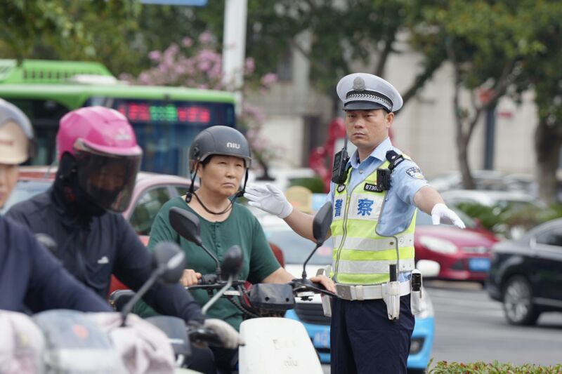 入伏以來,我市持續(xù)高溫,淮南交警開啟“尖兵”帶頭戰(zhàn)高溫、服務(wù)群眾爭先進行動,確保道路交通安全、暢通、有序。圖為全市公安機關(guān)成績突出青年民警、全市公安機關(guān)優(yōu)秀共產(chǎn)黨員楊坡頂著烈日在路口指揮交通。