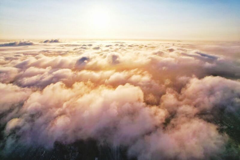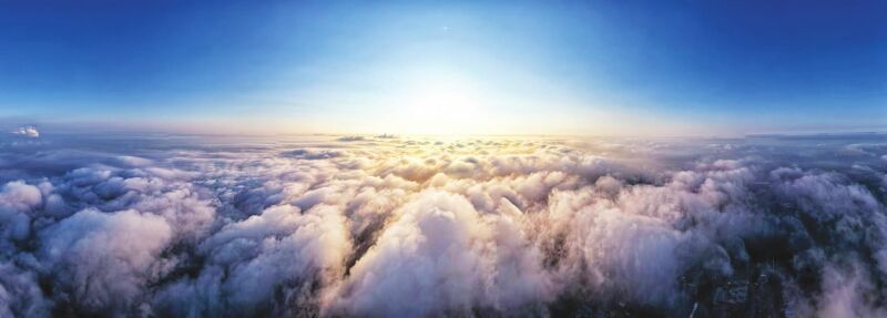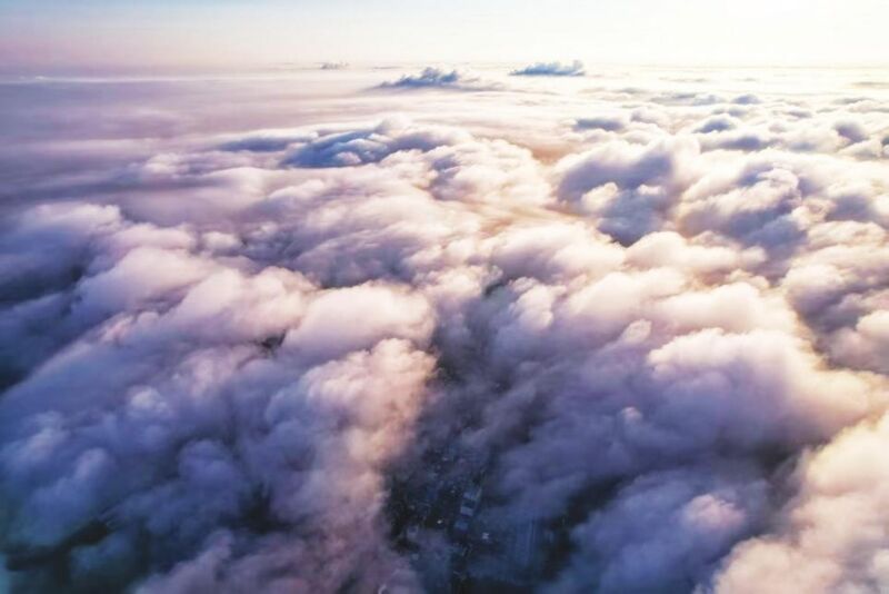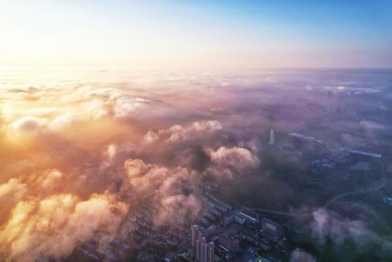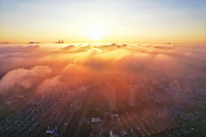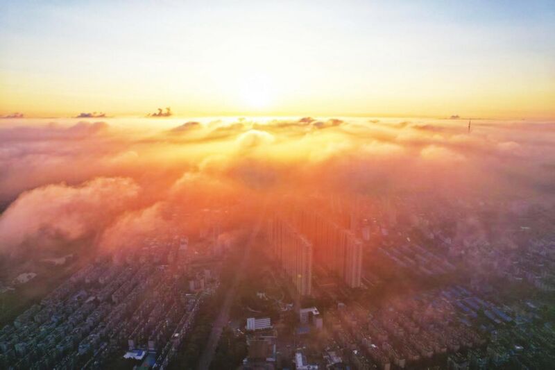 受臺風(fēng)“竹節(jié)草”影響,淮南連續(xù)幾日陰雨。8月3日清晨,天空終于放晴,城市上空在朝陽映照下云海翻涌,美得令人心醉。