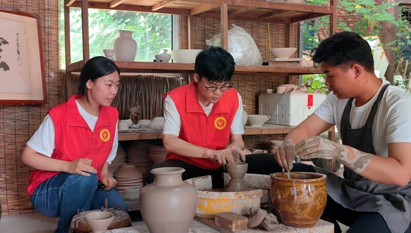 暑假期間,安徽理工大學(xué)“楚韻薪傳”大學(xué)生暑期社會實踐調(diào)研團走進大通區(qū)上窯鎮(zhèn),圍繞加強壽州窯陶瓷燒制技藝的保護傳承與創(chuàng)新活化、探索非遺研學(xué)與鄉(xiāng)村文旅融合新路徑開展調(diào)研,推動“非遺+研學(xué)”課程開發(fā),以非遺研學(xué)助力壽州窯活態(tài)傳承。
