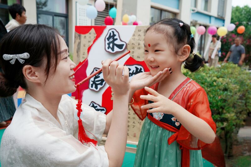 9月1日,市直幼教育集團萬茂分園舉辦中華傳統(tǒng)文化游園會,400多名孩子身著傳統(tǒng)服飾,通過“朱砂啟智”“擊鼓明志”等傳統(tǒng)儀式,體驗中華優(yōu)秀傳統(tǒng)文化的魅力。