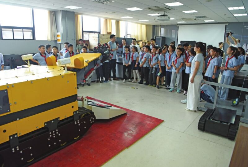 (記者 付莉榮)“太神奇了,這個(gè)機(jī)器的頭部頂端像個(gè)狼牙棒,通過遠(yuǎn)程操作,在井下可以進(jìn)行無人智能采煤,提高了工作效率,也保障了人員安全。”10月8日上午,安徽理工大學(xué)深部煤礦采動(dòng)響應(yīng)與災(zāi)害防控國(guó)家重點(diǎn)實(shí)驗(yàn)室里傳來陣陣驚嘆。田家庵區(qū)第十八小學(xué)組織社會(huì)實(shí)踐活動(dòng)走進(jìn)高校,同學(xué)們近距離體驗(yàn)操作井下智能掘進(jìn)機(jī)設(shè)備,并通過科學(xué)課、興趣實(shí)驗(yàn)、游戲互動(dòng),真切感受科學(xué)魅力。