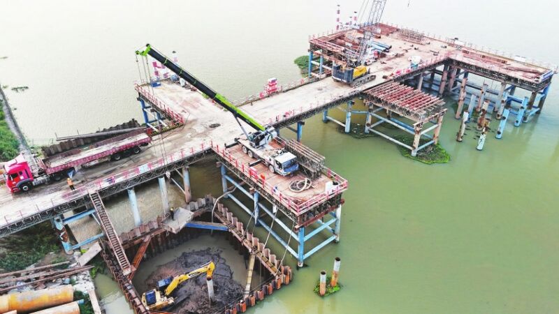 國慶、中秋雙節(jié)假期里,淮河之畔的淮南淮河大橋建設(shè)現(xiàn)場一片火熱。當(dāng)人們沉浸在休閑團聚的時光中,大橋工程的建設(shè)者們卻堅守崗位,錨定項目節(jié)點目標,嚴守安全紅線,以實干全力推動工程建設(shè)提速增效,讓建設(shè)熱潮與節(jié)日氛圍交相輝映。
