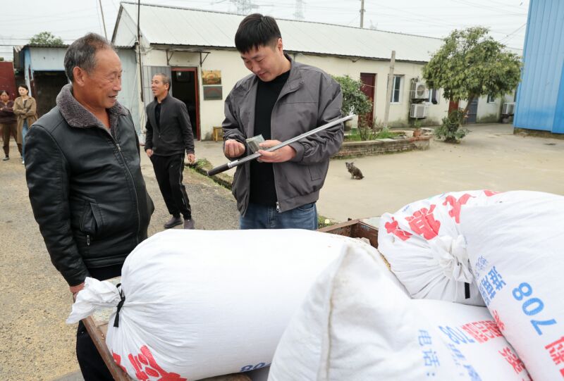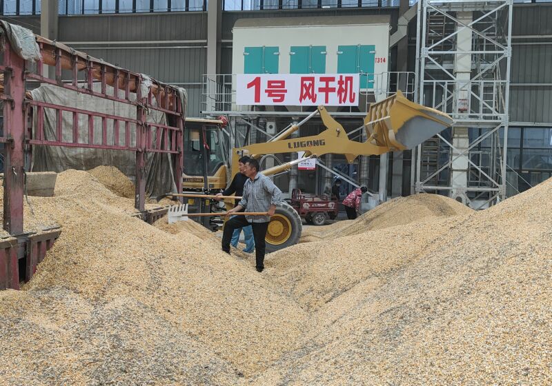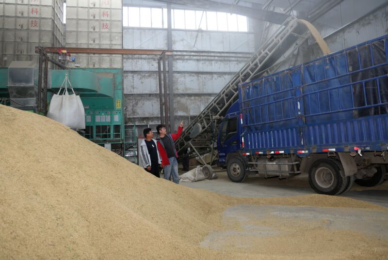 10月13日,淮南市永超工貿(mào)公司對(duì)附近農(nóng)戶的秋糧進(jìn)行及時(shí)收購。 (記者 張越 攝)