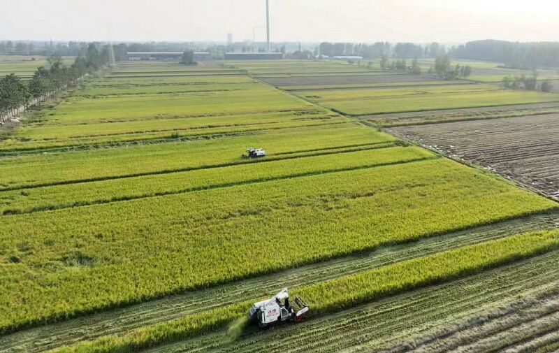 10月11日,鳳臺(tái)縣朱馬店鎮(zhèn)徐橋村種糧大戶在搶收水稻。 (通訊員 李巧玲 攝)