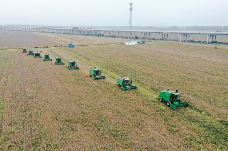 10月8日,淮南農(nóng)場組織機(jī)械搶收高粱。(記者 陳彬 攝)