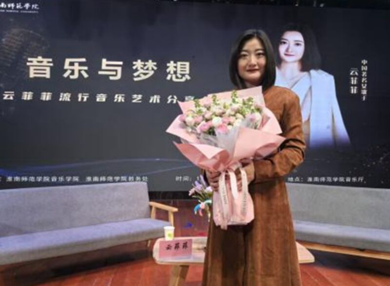 鎂光燈下,一襲棕色連衣裙的云菲菲微笑著望向臺(tái)下那些年輕而熱切的眼睛。11月5日在淮南師范學(xué)院音樂廳,近400名大學(xué)生與云菲菲共度了一場(chǎng)看似演唱會(huì)、實(shí)則遠(yuǎn)不止于此的分享會(huì)。這不是一場(chǎng)普通的演唱會(huì),而是一次靈魂的返鄉(xiāng)——一位從淮河岸邊走向全國(guó)的歌者,帶著她的音樂與夢(mèng)想,回到了滋養(yǎng)她的土地。