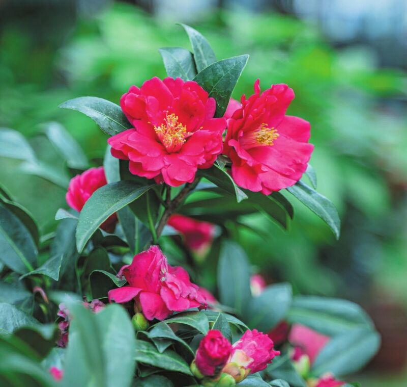 茶花花語與花神——茶花既入列中國傳統(tǒng)“十大名花”,又與杜鵑、龍膽、報春并列中國“四大自然名花”,在《鏡花緣》中更躋身花中“十二友”。茶花號稱“花中嬌客”,總體花語為“卓越、謙遜”,而色彩不同又寓意稍別:粉色象征克服困難、一帆風(fēng)順;金色代表謙遜、理想、美德與可愛;紅色寓意天生麗質(zhì)、令人驚艷;白色象征純真無邪、清雅可愛。在中國傳統(tǒng)花卉文化中,茶花是農(nóng)歷十月(公歷11月)的花神之一。其代表人物包含西漢王昭君,傳說她在赴匈奴和親前曾采摘一束茶花,途中與之相伴,直至枯萎凋零也不忍舍棄;另一位是唐代白居易,因茶花花期橫跨冬春又稱“耐冬”,與其名句“野火燒不盡,春風(fēng)吹又生”寓意相得益彰。