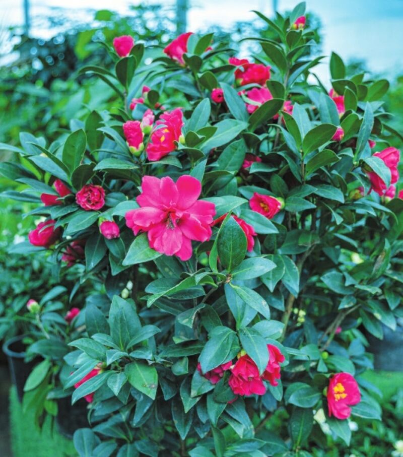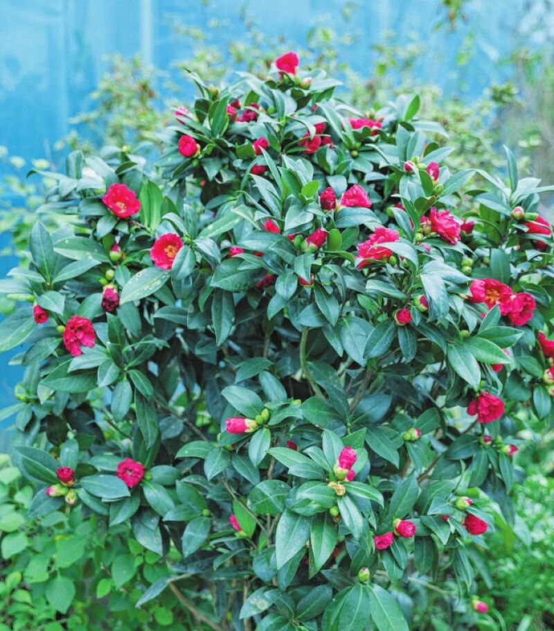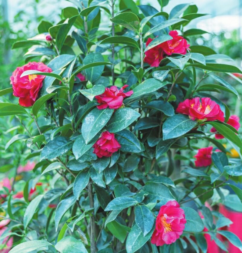 盆栽茶花養(yǎng)殖技巧——茶花在立冬之后持續(xù)開花,是冬季家庭盆栽的首選。盆栽茶花養(yǎng)殖技巧:1.土壤:按熟化紅壤土50%、木屑或食用菌渣40%、餅肥粉或牲畜糞10%的比例混合,澆水適量并發(fā)酵熟化后使用;2.光照:冬春季可接受全天日照,夏天需避免陽光直射,要將植株移到見光背陽、通風(fēng)良好的環(huán)境中養(yǎng)護;3.溫度:茶花生長適宜溫度為18-25℃,冬季雖然耐寒,但在氣溫驟降前需將花盆移到背風(fēng)向陽處安全越冬;4.濕度:茶花喜濕,春秋季每日澆水一次,夏季早晚各澆水一次,每月可澆一次0.5-1%的硫酸亞鐵水,以防土壤堿化;5.營養(yǎng);根據(jù)薄肥勤施的原則,每月以腐熟枯餅水、花卉專用肥進(jìn)行1-2次根外施肥,生長旺季以1-2%的植物生長素噴施葉片。