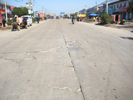 據(jù)村民介紹,這條路上不時(shí)有運(yùn)煤車等大型車輛路過(guò),日積月累,道路就成了現(xiàn)在的樣子。是不是只有從泉山到土樓村的路段有破損情況呢?為此,記者又乘車?yán)^續(xù)向南到該鄉(xiāng)西瓦村進(jìn)行了查看,發(fā)現(xiàn)沿路仍不時(shí)有路面破損情形,且西瓦村境內(nèi)部分路段的單幅路面破損情形異常嚴(yán)重,不但完整的路面碎成了幾大塊,而且碎裂后還發(fā)生了下陷,路面上根本無(wú)法行車。