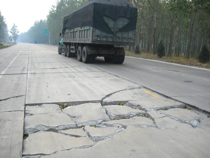 圖一:三和鄉(xiāng)土樓村境內(nèi)的206國(guó)道部分路段破損成了蛛網(wǎng)狀。