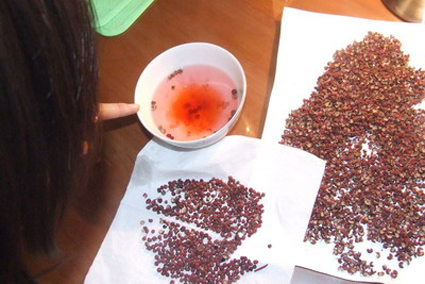 蔣師傅告訴記者,市場(chǎng)上花椒有幾種價(jià)格,最貴的70元/公斤,最便宜的20元/公斤。貴的是一種青花椒,顆粒大,飽滿,沒有雜質(zhì),稍次一等就是顆料小的,里面有秸桿或其他雜質(zhì),有的甚至摻雜了染色的麥殼,外形和花椒極為相似。最差的是用染色泥土混入其中,泥土個(gè)頭大小,顏色跟真的非常接近,不細(xì)看根本看不出來,不過用手一捏,手指會(huì)被染上紅色。