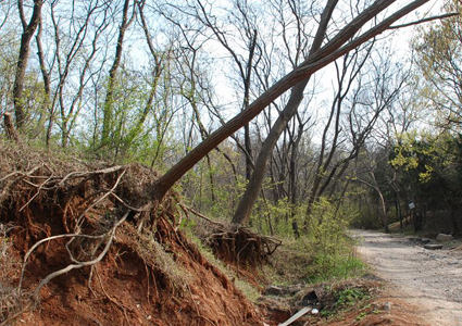 大通濕地公園如此,舜耕山又如何呢?隨后,記者又趕到舜耕山,拾階而上,記者發(fā)現(xiàn)舜耕山和大通濕地公園一樣,到處被挖得千瘡百孔,一些樹木的根部也同樣因?yàn)橥诰蚨懵对谕,傾斜的樹干仿佛風(fēng)一吹就能倒。