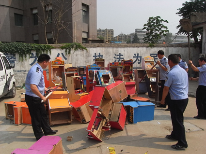 消息見報的當(dāng)日上午,老龍眼派出所的10名民警及6名聯(lián)防隊員,對洞山基地菜市附近的賭博機進行了徹底清查、取締,共收繳、銷毀賭博機40余臺。據(jù)老龍眼派出所負責(zé)人介紹,對于利用賭博機賭博的現(xiàn)象,老龍眼派出所一直采取嚴厲的手段進行打擊,然而由于開設(shè)賭博機人員為了逃避打擊,采取分散隱蔽的經(jīng)營方式,從而給管理和取締工作帶了很大的難度,這次集中整治轄區(qū)內(nèi)賭博機行動,不單是打擊、取締了《淮河早報》所報道的這幾家賭博機室,同時,老龍眼派出所也舉一反三,安排民警深入社區(qū),細致摸排,一旦發(fā)現(xiàn)賭博機,馬上采取就地銷毀的方式,予以取締。