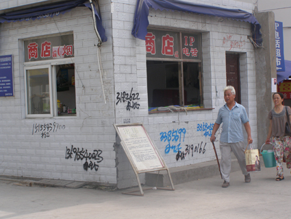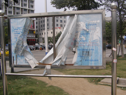 圖三:火車站廣場上的宣傳欄已經嚴重破損