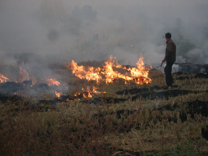 交談中,這位農(nóng)民告訴記者,他也知道焚燒的行為是不被允許的,但他焚燒也是很無(wú)奈的事,因?yàn)闆](méi)有什么好的辦法來(lái)處理稻茬和稻稈,“特別是這些稻茬,都連著泥土的,其他的方法很難處理!薄皼](méi)有辦法,到該種小麥的時(shí)候了,大家就都得盡快進(jìn)行焚燒。”這位農(nóng)民如是說(shuō)。