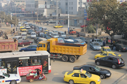 圖:舜耕路與淮舜南路交叉口處車輛搶行造成交通堵塞