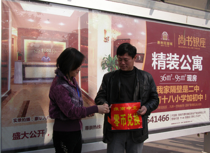 圖一:在泉山公交車站設(shè)有零錢兌換點(diǎn)。