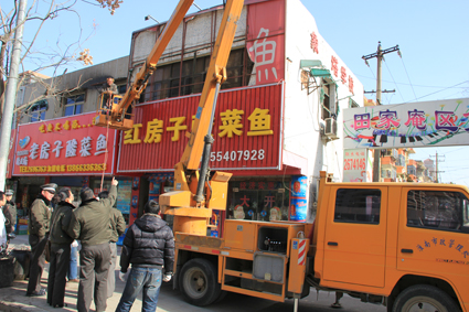 2010年12月30日,新年的鐘聲即將敲響,淮南市城管行政執(zhí)法局為了扮靚能源城,特出動(dòng)高架車拆除破損的樓體戶外廣告,借此給廣大市民營造一個(gè)良好的節(jié)日氛圍。