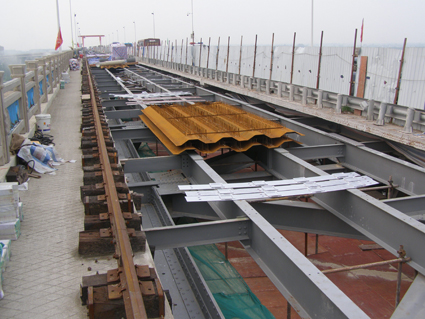 圖:重新涂裝的鋼梁將成為淮河大橋強(qiáng)力支撐。