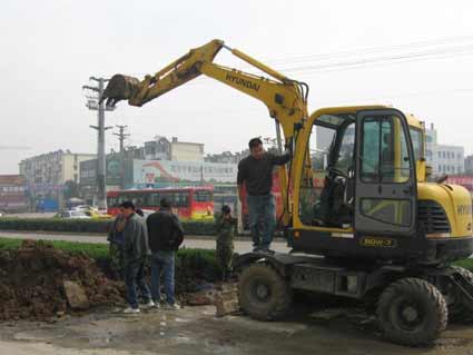 接到王先生的反映后,記者立即前往現(xiàn)場進行查看。當天上午12時許,記者來到泉山十字路口時看到,在洞山西路北側機動車輔道上,距十字路口約20米的地方,一臺挖掘機和數(shù)名工作人員正在作業(yè),F(xiàn)場已挖掘出一個一米多深、直徑約1.5米的大坑,一名工作人員正在坑內忙碌著,在坑旁邊已堆起了很多挖起的泥土。而從大坑所在位置邊上的綠化帶起,記者看到機動車道上留有大片的水漬,向西延伸了數(shù)百米。