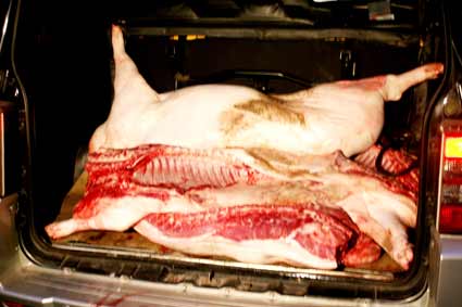 10月18日清晨5時許,淮南市商務(wù)行政執(zhí)法大隊、潘集區(qū)公安分局經(jīng)偵大隊、潘集區(qū)商務(wù)局三家聯(lián)袂執(zhí)法對潘集區(qū)高皇鎮(zhèn)商務(wù)街西門一家非法屠宰場進行突查。結(jié)果發(fā)現(xiàn),這家非法屠宰場為宰殺一條龍作業(yè),然后將私宰肉品進行批發(fā),使之流入市場,嚴重干擾國家規(guī)定的生豬定點屠宰政策。執(zhí)法人員當場收繳4頭毛豬。此案正在進一步審理中。