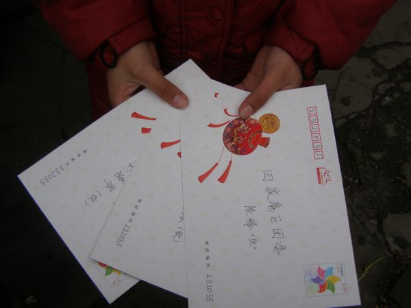 等到梅梅寫(xiě)好了那一封封新年賀卡,記者一一翻閱信封上這些人的名字:九龍崗派出所的李道軍,淮南市紅十字會(huì)的陳玉琴,田家庵區(qū)團(tuán)委的陳峰,九龍崗鎮(zhèn)副鎮(zhèn)長(zhǎng)劉慶華、九龍崗鎮(zhèn)民政辦主任周紅……梅梅把這些曾經(jīng)幫助她的人的名字深深記在了心里,正一筆一劃地表達(dá)著自己的心聲。禮輕情意重,賀卡雖小,但卻承載著祖孫倆最誠(chéng)摯的感激。