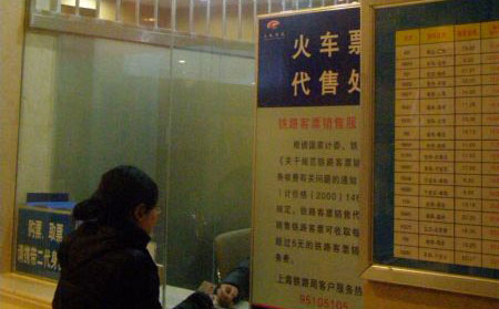 圖為一位市民前往新設(shè)的火車票代售點(diǎn)購票。