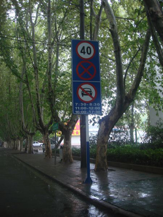 圖二:迎賓路邊樹(shù)立的交通標(biāo)識(shí)牌標(biāo)明了限時(shí)通行時(shí)段。
