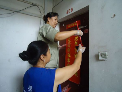 新集家園北區(qū)、中區(qū)、東區(qū)居民樓建于建礦初期,年代已久,加之住戶后期裝修更換防盜門等,造成門牌號(hào)缺失,給廣大居民的日常生活造成諸多不便。新集社區(qū)居委會(huì)針對(duì)此種情況,積極發(fā)動(dòng)社區(qū)志愿者,于8月20日開始,逐小區(qū)、逐樓棟、逐單元、逐樓層、逐戶進(jìn)行門牌號(hào)的漆刷工作。