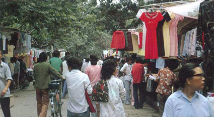 老淮南人都知道早在上世紀八九十年代,東部的人買東西要去東城市場,西部的人圖方便買東西則是去“香港街”和“澳門街”,條件好些的則是趕早班車到東城市場去購物。而當(dāng)時的東城市場所謂的“店鋪”,只是在東城市場里面一小塊地方支兩個小桿,拴幾根鐵絲,上面掛上幾件衣服就算是攤位,盡管衣服款式少,購物環(huán)境差,卻成為淮南東部市民“最愛逛的地方!
