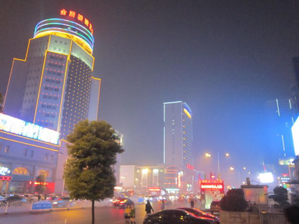 圖二:龍湖路與朝陽路商業(yè)區(qū)燈火輝煌,逛街購物的市民熙熙攘攘。