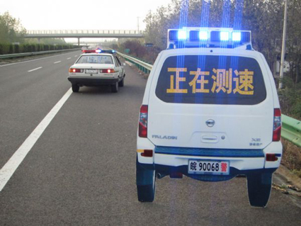 11月10日,司機(jī)張某駕私家車趕往淮南辦事,因?yàn)槭录保囻側(cè)氤赂咚俸蟊阋宦房耧j。行至淮南段某處時(shí),一輛停在路肩的警車突然進(jìn)入張某的視線,該警車不僅警燈閃爍,更有十分扎眼的四個(gè)大字“正在測(cè)速”,嚇的超速行駛的張某是一身冷汗,趕緊輕踩剎車。然而,等他開到警車跟前,張某才目瞪口呆地發(fā)現(xiàn),這哪里是什么“警車”,只是一塊會(huì)發(fā)光的警車樣鋼板。