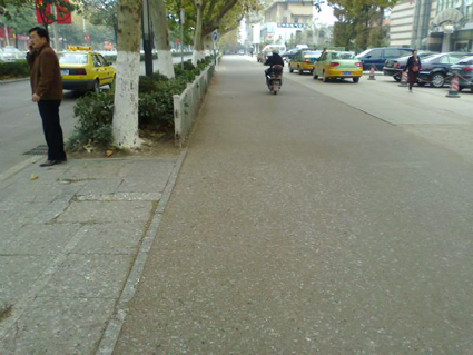 圖為洞山中路人行道路面留下的鳥糞痕跡。